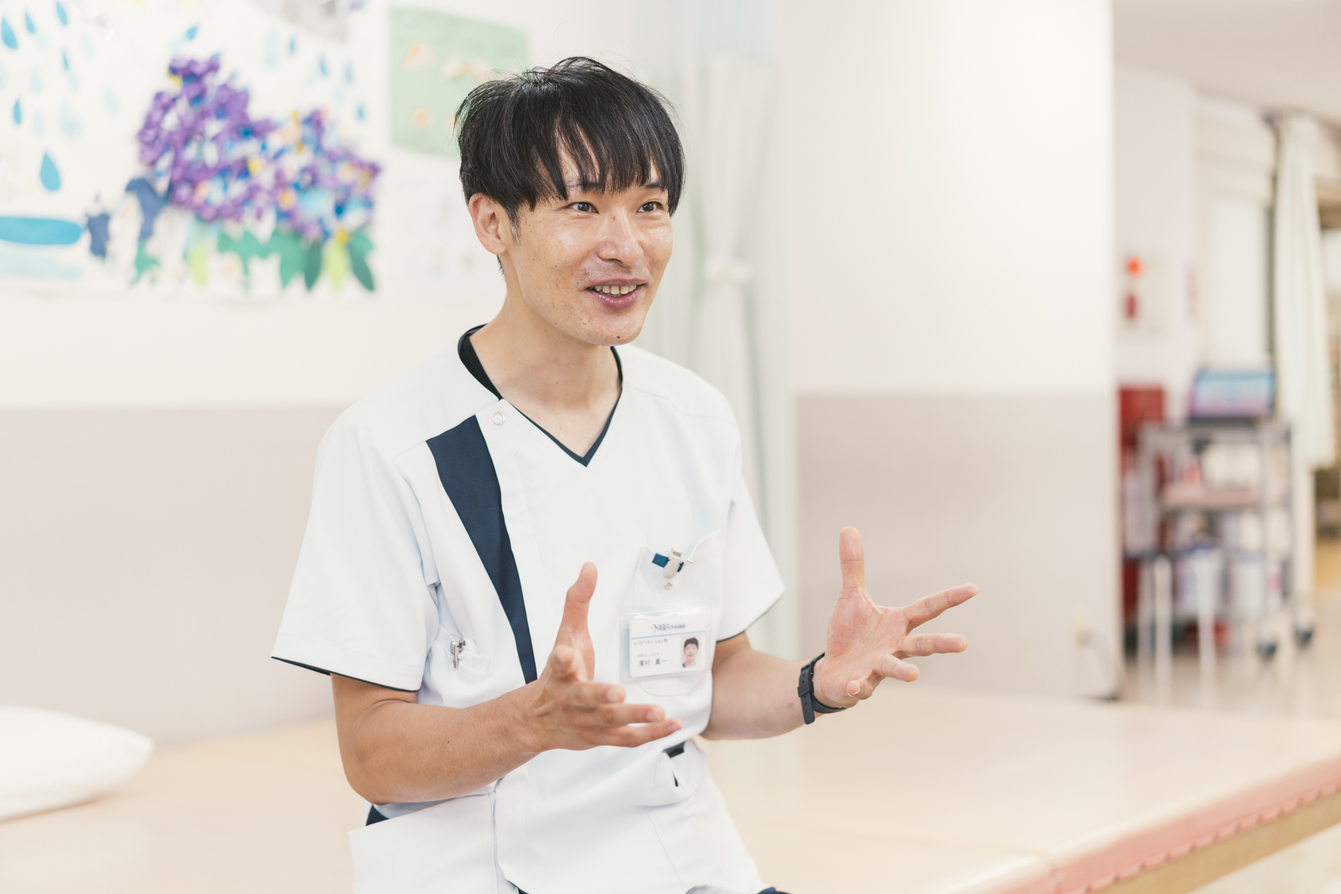発症直後の患者様に対するリハビリから、全身状態やリスクの管理、早期の介入などを学びたいと考えており、初めての臨床は急性期病院と決めていました。 また地域密着の病院を探していたのですが、当法人では急性期病院から地域支援までを包括的に行っているため、患者様の生活を地域までイメージした介入ができます。 患者様との距離の近い当院に魅力を感じて入職を決めました。